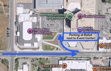 Parking is available at the Bally’s parking lot located next to the Tahoe Blue Event Center.